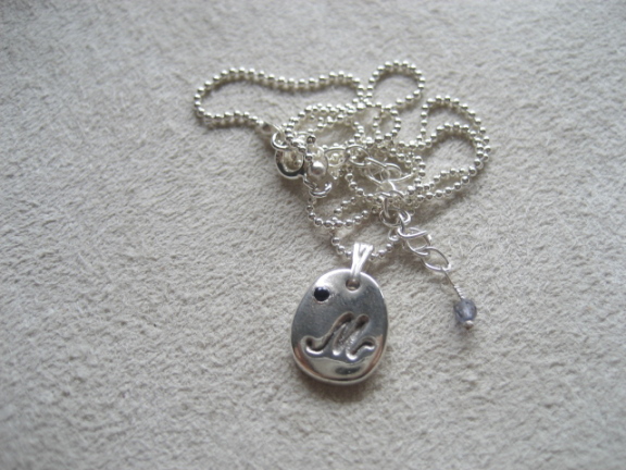 銀製silver925&天然石 イニシャルnecklace ”M” |