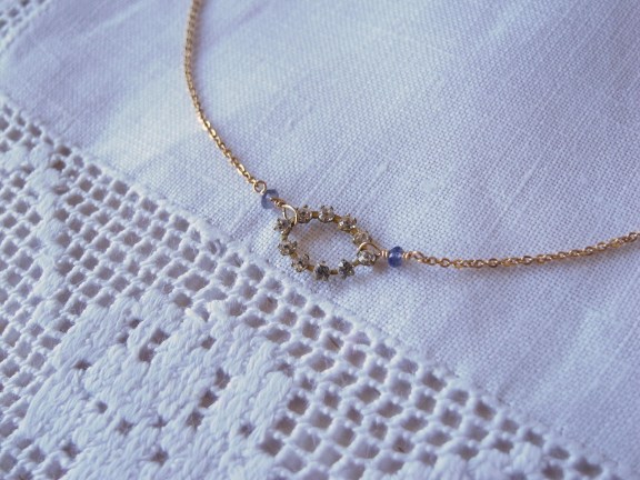 ヴィンテージクリスタル、天然石アイオライトネックレス