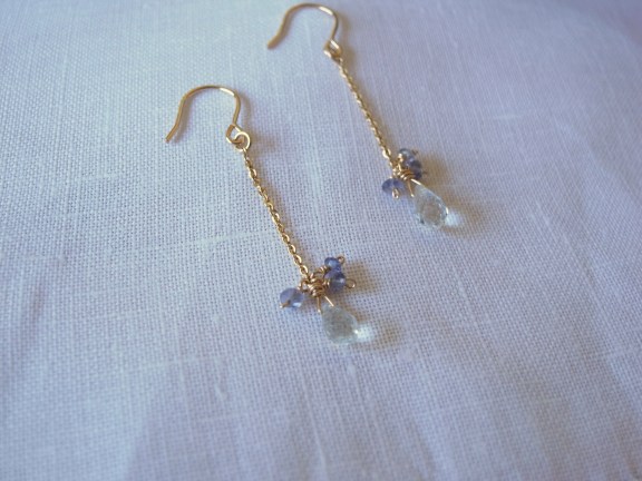 天然石アクアマリン、アイオライトピアス